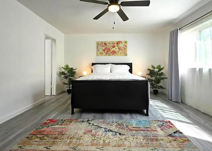 Ausgestattet mit einer Mikrowelle, einer Kaffee-/Teemaschine und den Kühlschränken, ist einer Küche verfügbar. Dieses Apartment bietet den Gästen auch Ausstattung zur Kaffee- & Teezubereitung. Das Restaurant Big Jo's, wo man speisen kann, ist 650 Meter entfernt. Das Apartment liegt 5 Fußminuten von der Bushaltestelle Wilshire & 22nd entfernt. Lassen Sie Hektik und Lärm hinter sich und entspannen Sie sich in einem Patio und einem Golfplatz. Besuchen Sie auch Aerobic-Stunden, wenn Sie Ihren Urlaub aktiv gestalten möchten.